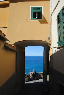 Per recuperar-nos una mica de la calor fem un granissat i, pujant de nou al tren, anem cap a l'últim poble d'avui, Manarola. Els cinc pobles tenen un aire semblant, amb el mateix tipus de cases, de carrerons... però a la vegada cada un és únic i diferent als anteriors. Ens passegem pels seus carrers i decidim fer un tram de la Via dell'amore, el tram de camí de ronda que uneix Manarola i Riomaggiore. Actualment, però, només es poden recórrer el primers 200 metres des de Manarola, ja que a causa de les esllavissades de fa uns anys la resta està tancat. Una llàstima...